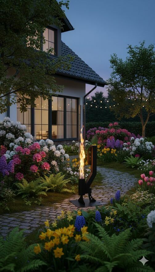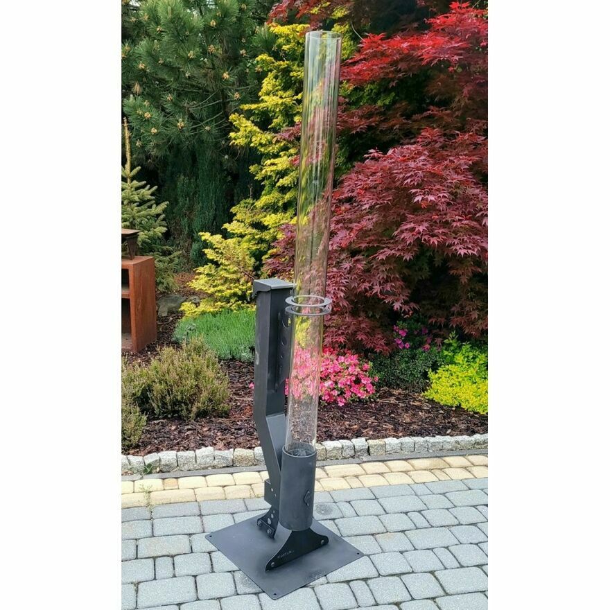 Ogrzewacz tarasowy na pellet - palnik spalający pellet dający miłe ciepło i naturalny płomień zabezpieczony szklaną osłoną.Piękna lampa ogrodowa z naturalnym ogniem dzięki spalaniu ekologicznego pelletu.